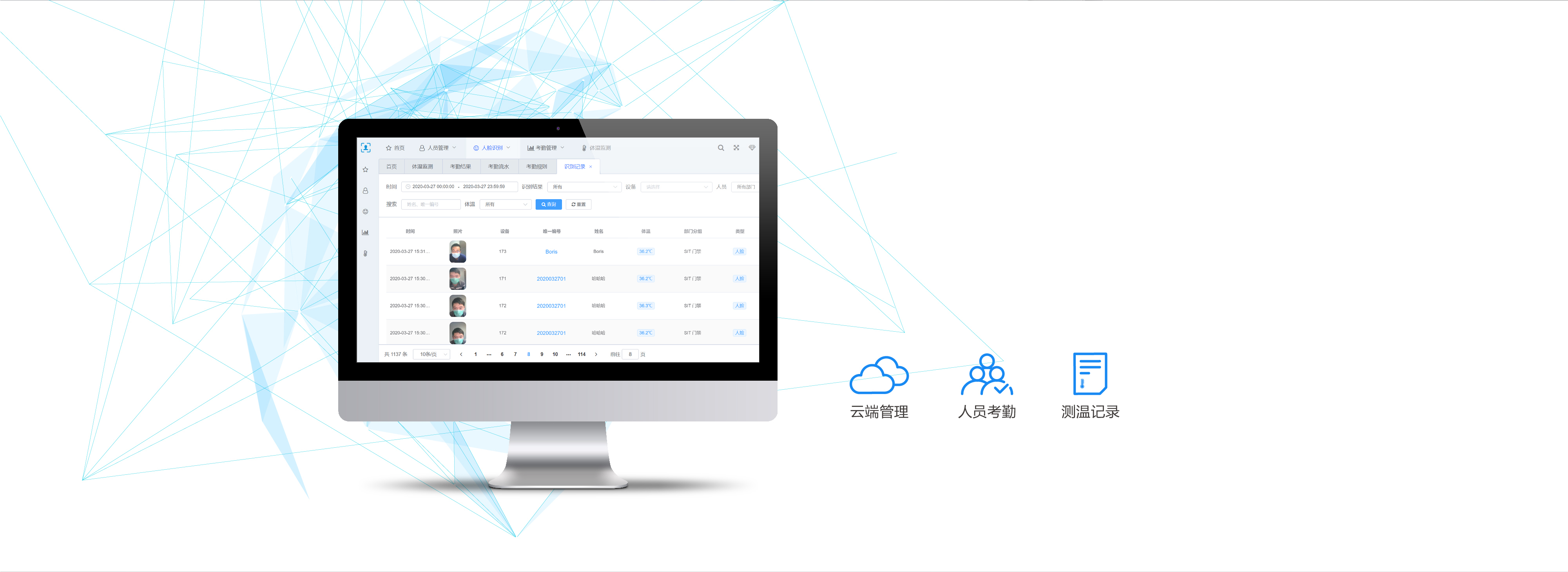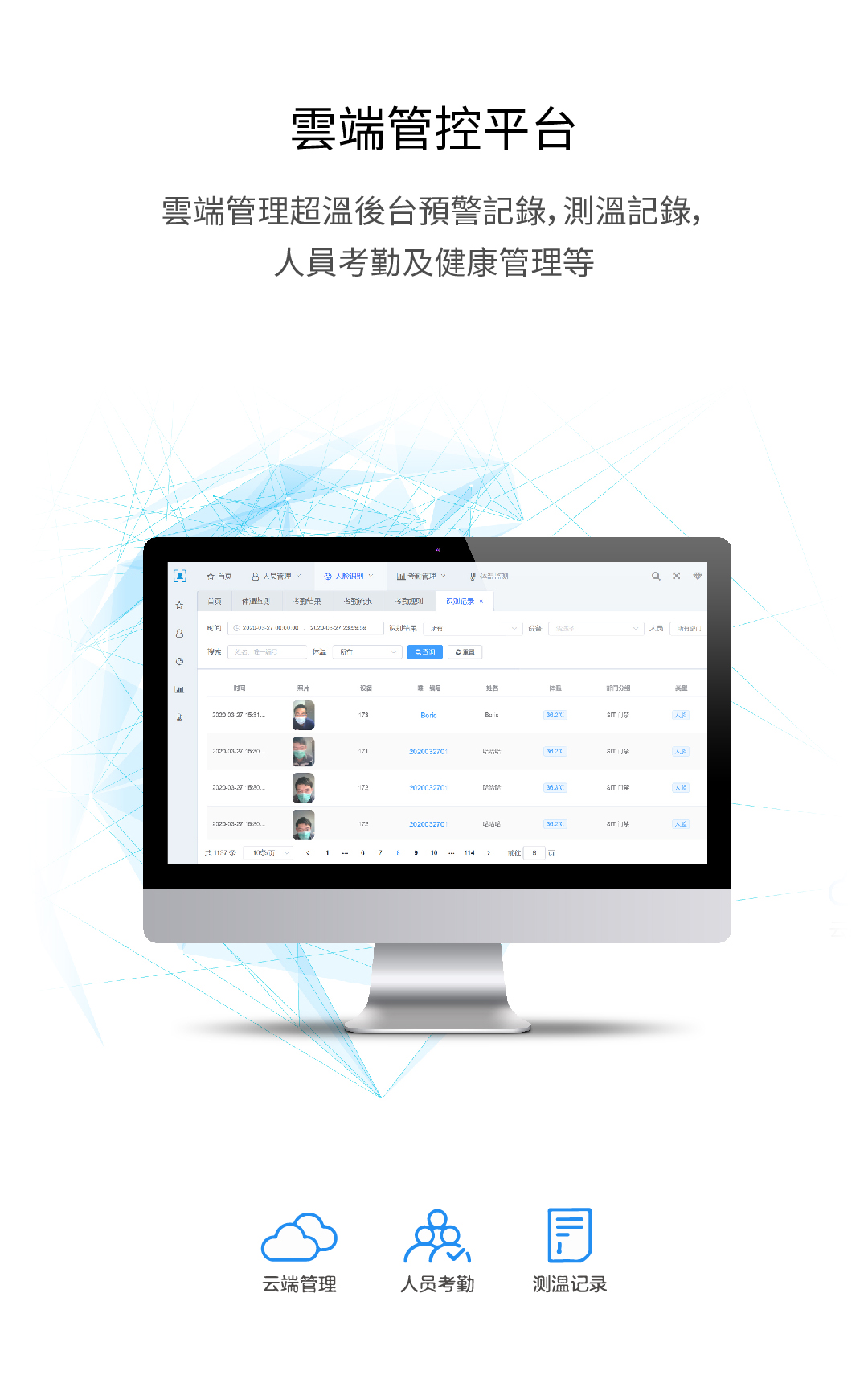 人臉識別 | 體溫檢測 | 雲端管控 | 毫秒響應
